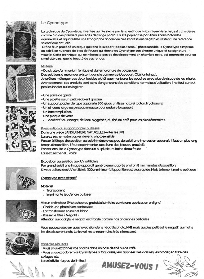 2025 Soirée CYANOTYPE. Animation par Sylvia Pigarella.